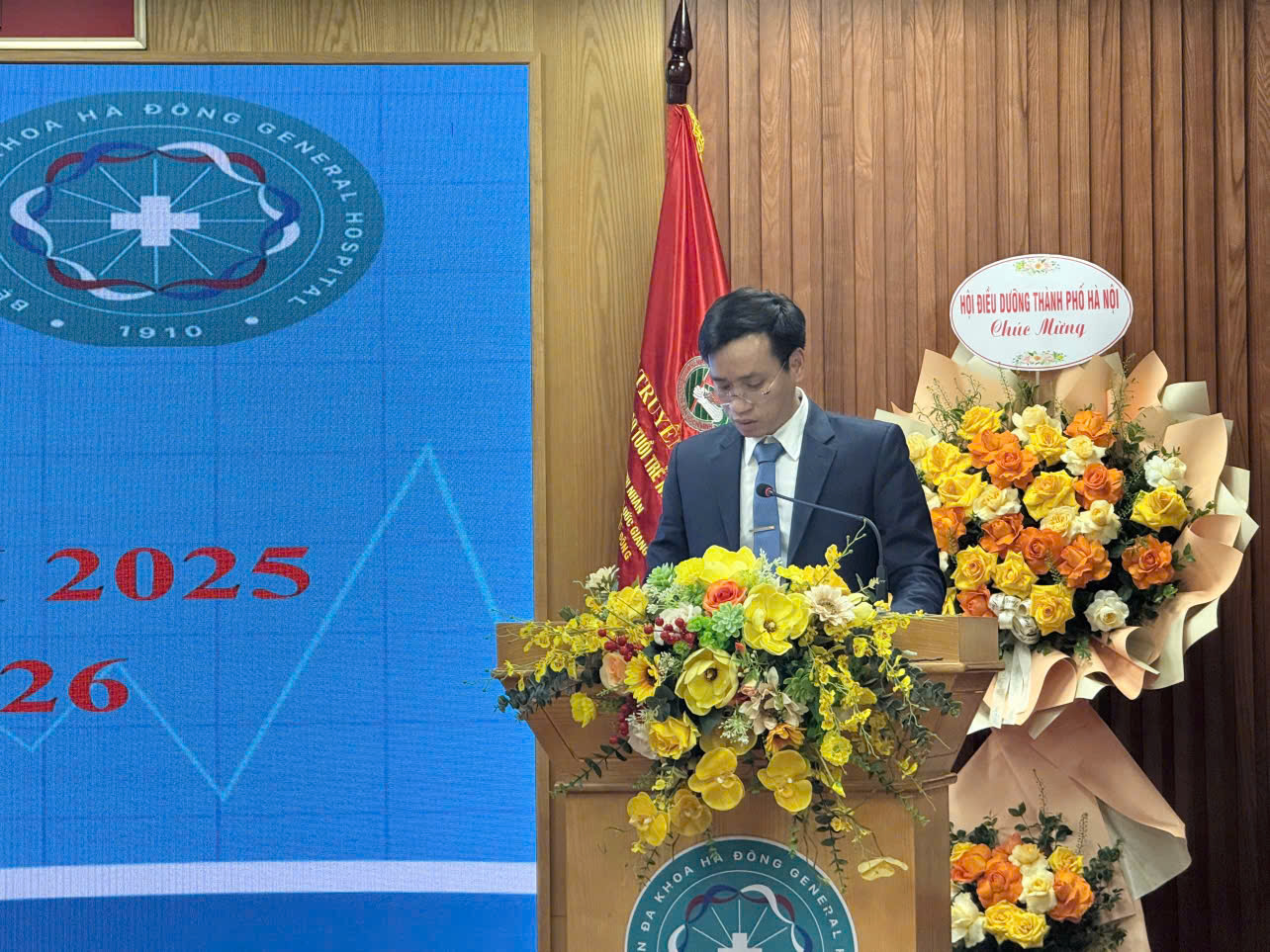 Phát biểu khai mạc hội nghị, TS.BS Nguyễn Thành Vinh – Giám đốc Bệnh viện Đa khoa Hà Đông nhấn mạnh Năm 2025 là dấu mốc quan trọng khi Bệnh viện Đa khoa Hà Đông lần đầu được giao nhiệm vụ đầu ngành điều dưỡng, vừa là vinh dự vừa là trách nhiệm lớn. Bệnh viện đã triển khai đồng bộ các hoạt động đào tạo, hỗ trợ chuyên môn tuyến dưới, đổi mới hình thức đào tạo và nâng cao chất lượng chăm sóc người bệnh. Vai trò đầu ngành được thể hiện qua việc lan tỏa kiến thức, chuẩn hóa thực hành điều dưỡng và lấy người bệnh làm trung tâm. Trên nền tảng đó, năm 2026 Bệnh viện sẽ tiếp tục nâng cao đào tạo, nghiên cứu khoa học và chuyển đổi số điều dưỡng trong quản lý và đào tạo điều dưỡng, nhằm thực hiện tốt hơn nữa vai trò đầu ngành được giao. Ban Giám đốc luôn đồng hành, tạo điều kiện để công tác điều dưỡng phát triển bền vững.