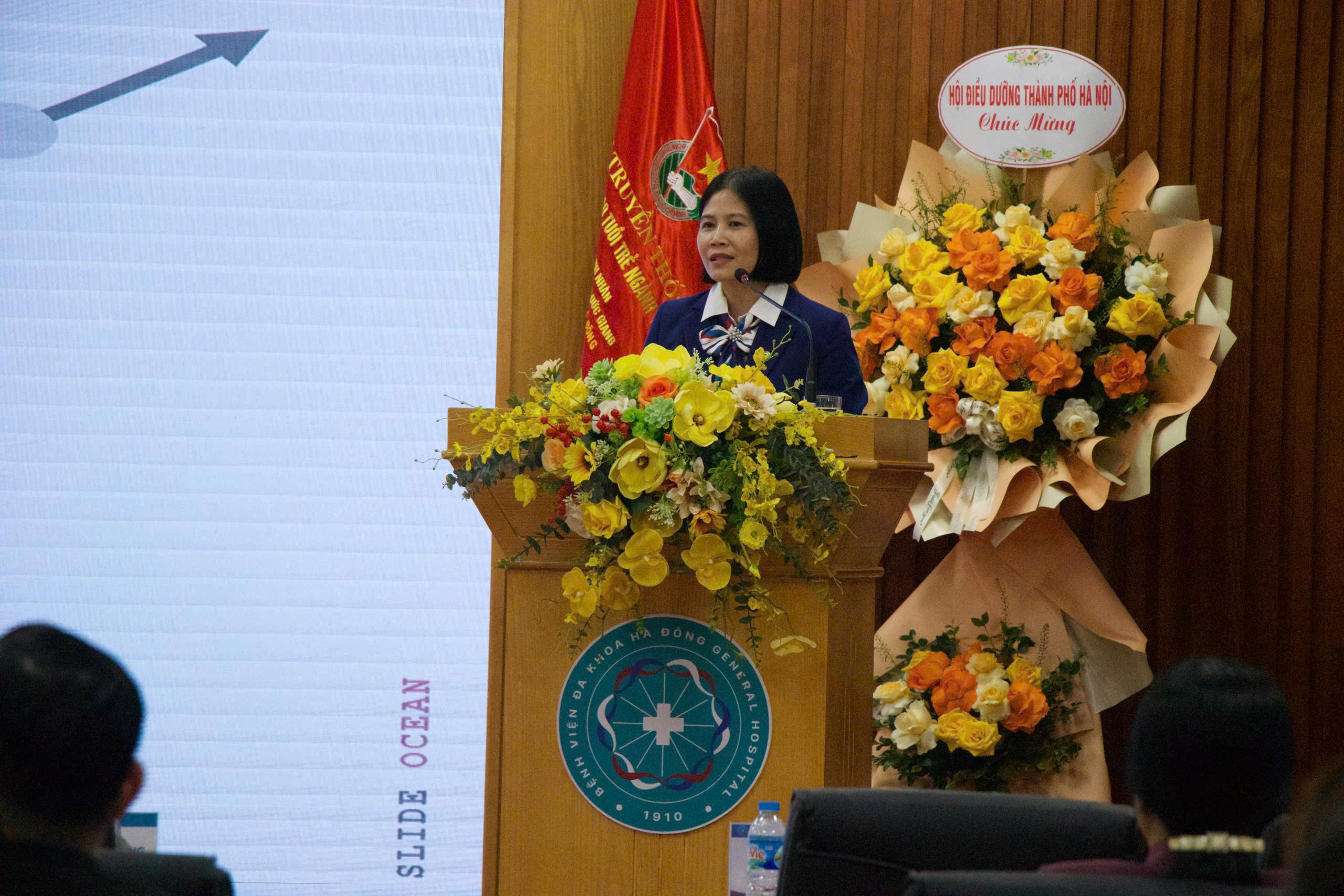 Th.S. Nguyễn Thị Phương – Trưởng phòng Điều dưỡng, Bệnh viện Đa khoa Hà Đông báo cáo hoạt động đầu ngành Điều dưỡng năm 2025 và phương hướng hoạt động năm 2026