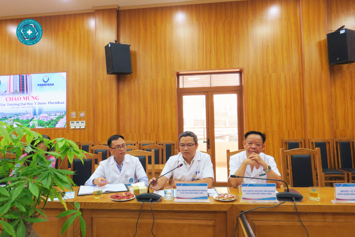 Cũng tại buổi làm việc TS. BS Nguyễn Thành Vinh – Giám đốc Bệnh viện Đa Khoa Hà Đông chia sẻ Trong nhiều năm qua, Bệnh viện Đa khoa Hà Đông và Trường Đại học Y – Dược Phenikaa đã duy trì mối quan hệ hợp tác chặt chẽ, đặc biệt trong lĩnh vực đào tạo khối ngành sức khỏe. Nhà trường thường xuyên cử sinh viên đến bệnh viện thực tập lâm sàng, góp phần nâng cao chất lượng đào tạo gắn với thực tiễn. Sự tham gia trực tiếp của Ban Giám hiệu cùng các thầy cô bộ môn trong các hoạt động hợp tác lần này sẽ góp phần tăng cường gắn kết giữa hai bên, đặc biệt trong lĩnh vực đào tạo.