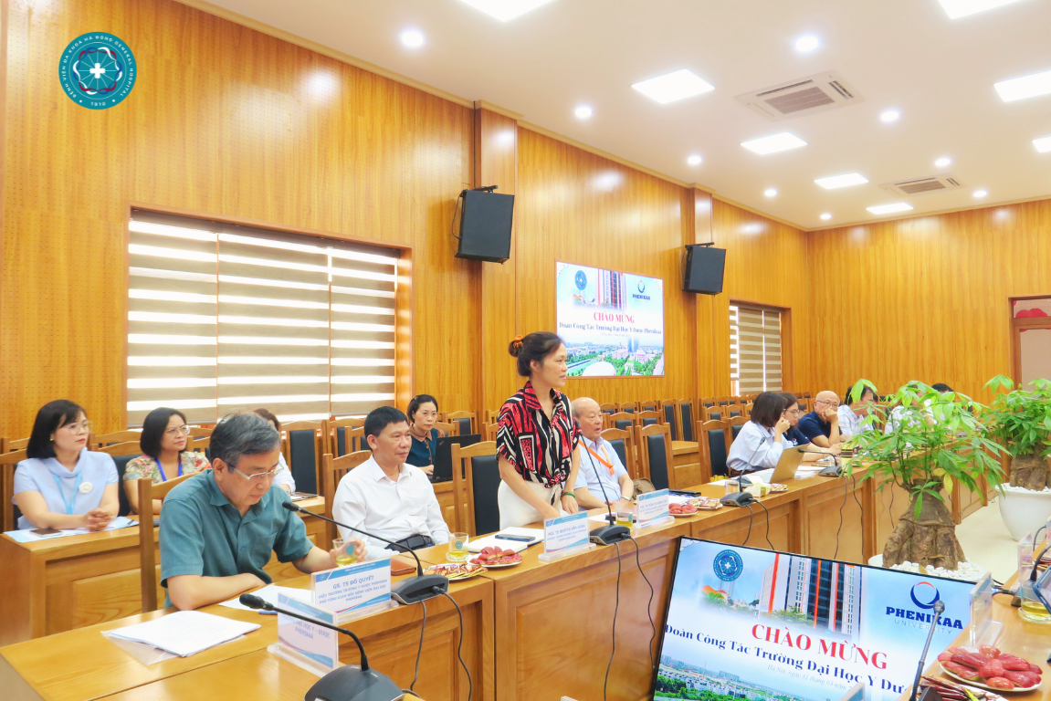 Tham dự buổi làm việc về phía Trường Đại học Y – Dược Phenikaa có GS.TS Đỗ Quyết – Hiệu trưởng Trường Y – Dược Phenikaa, Phó tổng giám đốc Bệnh viện Đại học Phenikaa, PGS.TS Nguyễn Văn Hùng – Phó Hiệu trưởng Trường Y - Dược Phenikaa, Trưởng Khoa Dược, PGS.TS Trần Thị Minh Tâm – Phó Hiệu trưởng Trường Y - Dược Phenikaa, Trưởng Khoa Y tế cộng đồng cùng đại diện Chánh văn phòng, Phó Chánh và Trưởng các Khoa, các Bộ môn liên quan của Trường.
