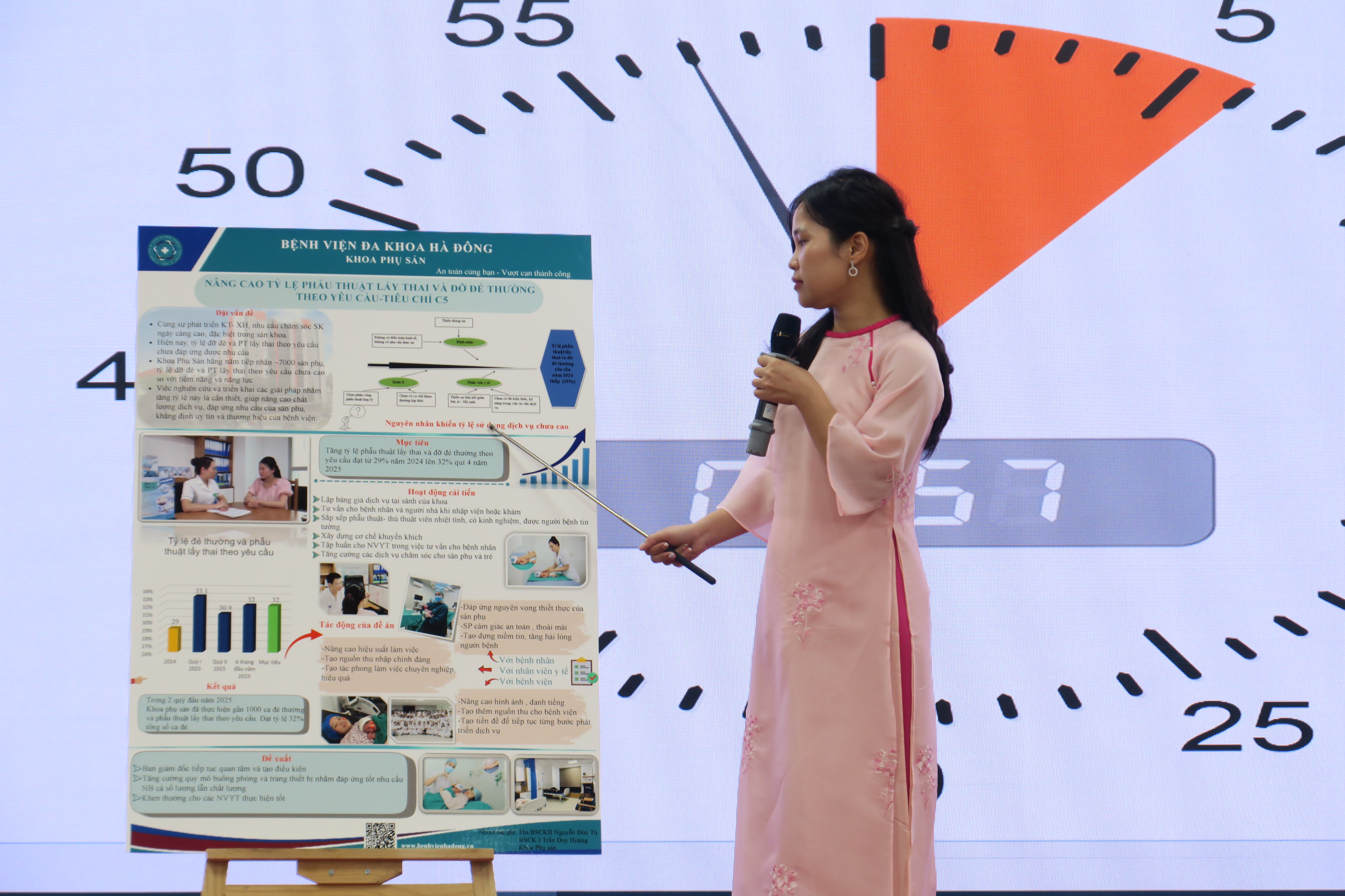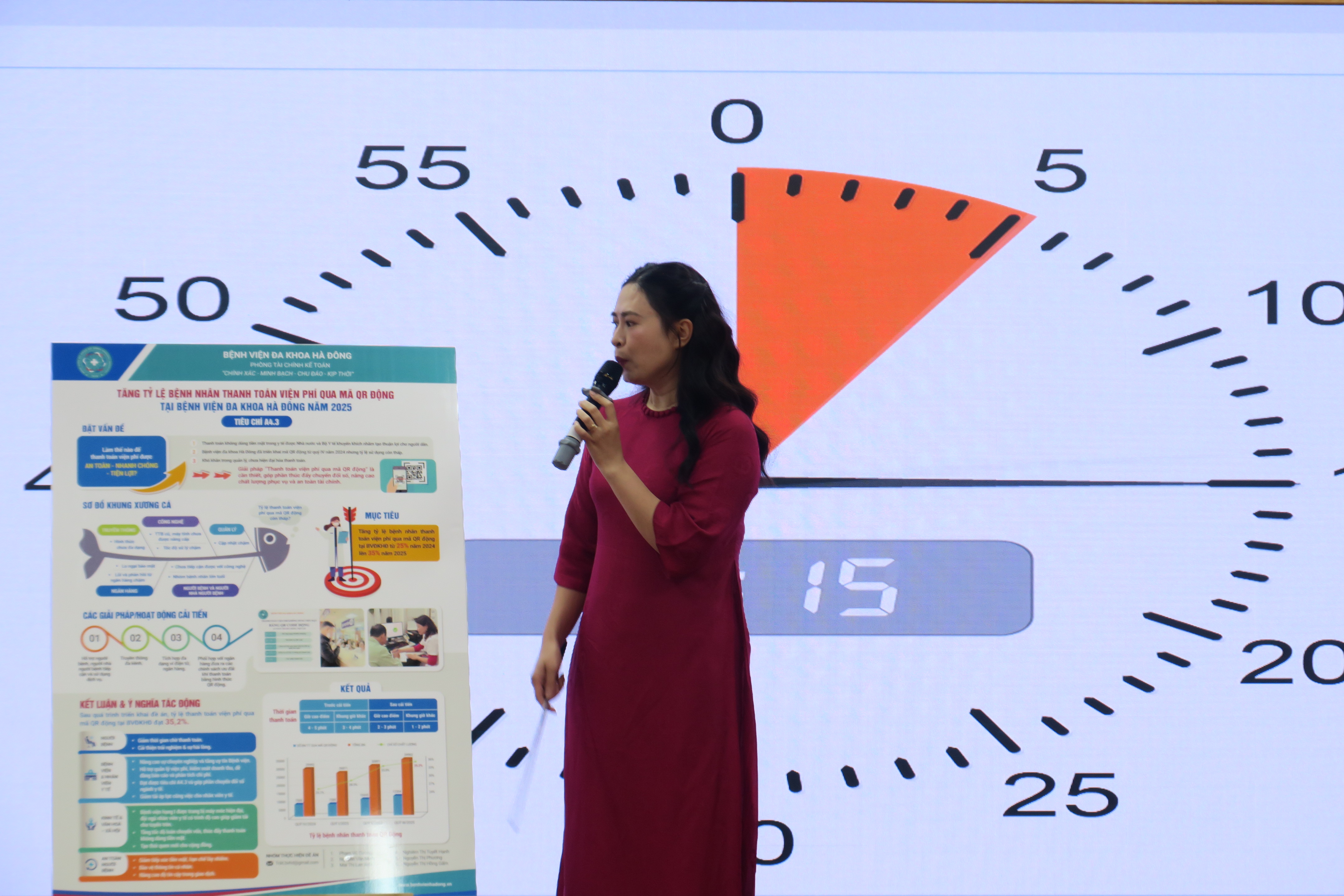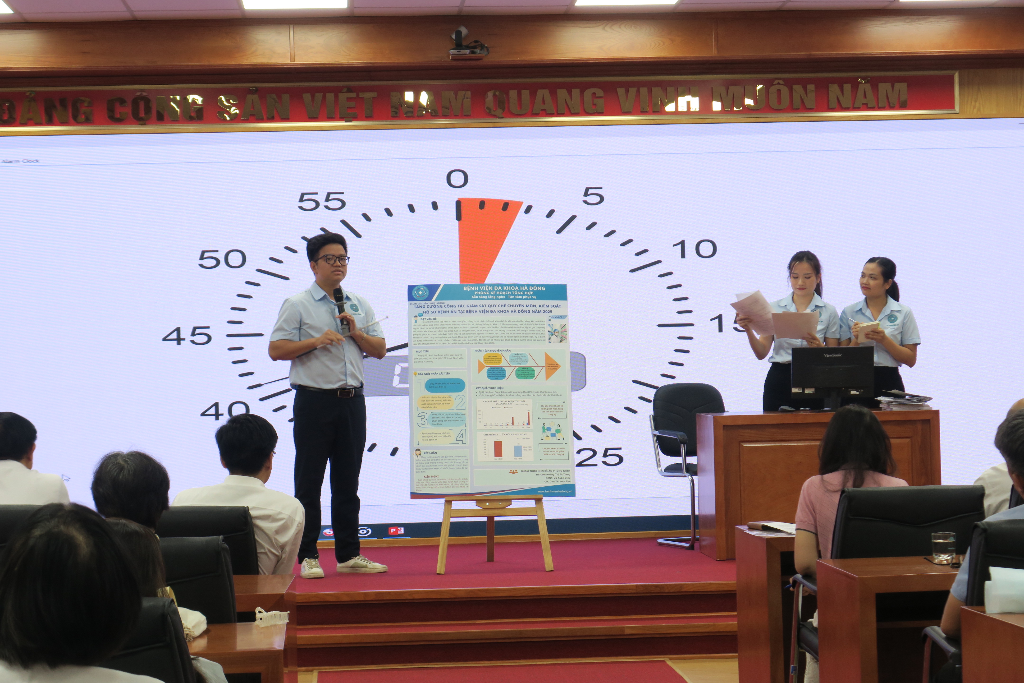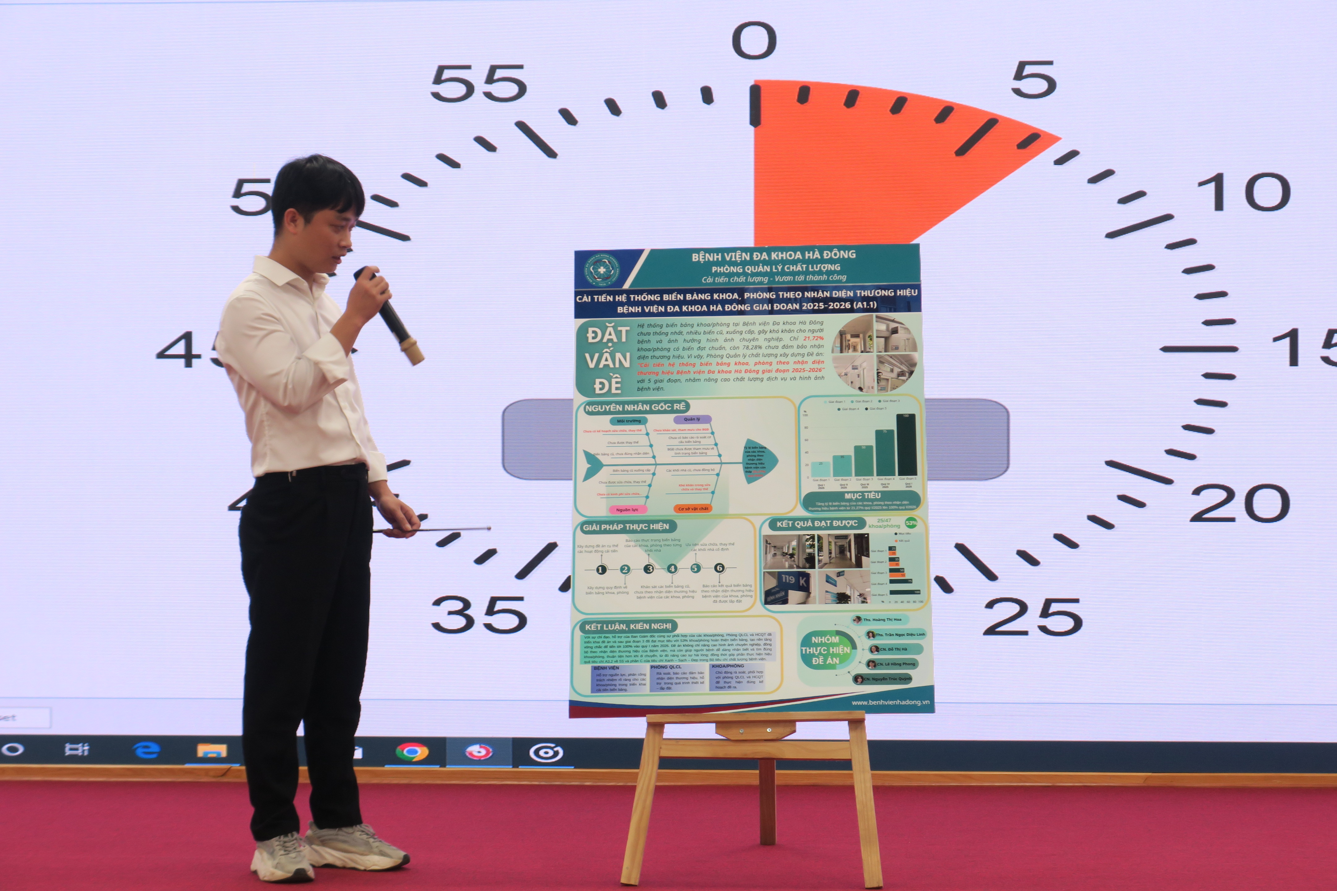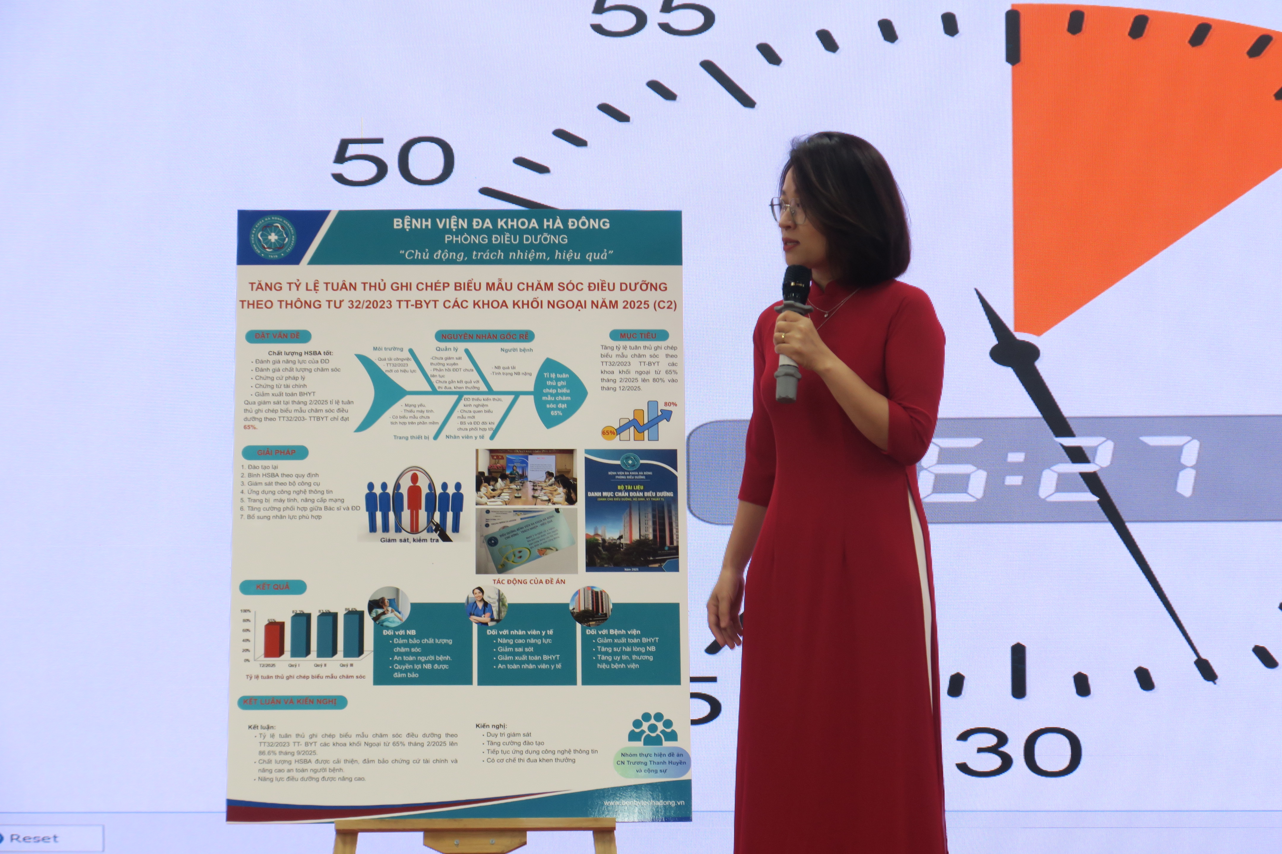 Thay vì hình thức báo cáo bằng văn bản như trước đây, hai năm trở lại đây, Phòng Quản lý chất lượng – Bệnh viện Đa khoa Hà Đông đã triển khai phương pháp báo cáo đề án cải tiến thông qua hình thức poster trực quan, giúp tăng hiệu quả truyền thông nội bộ và khuyến khích tư duy sáng tạo trong trình bày nội dung chuyên môn.