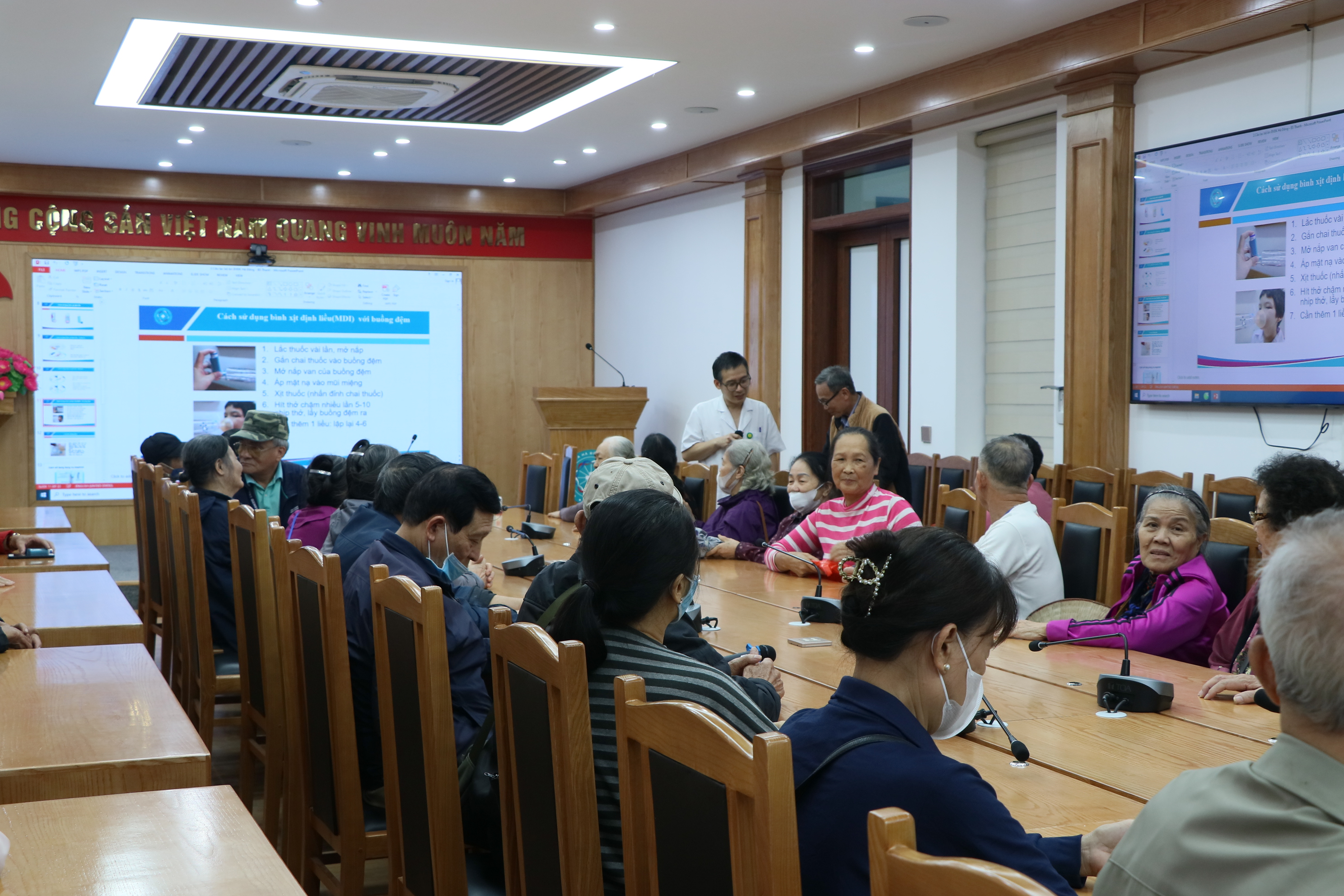Buổi sinh hoạt diễn ra trong không khí sôi nổi, cởi mở, người bệnh hào hứng đặt câu hỏi và chia sẻ kinh nghiệm trong quá trình điều trị. Đây là hoạt động có ý nghĩa thiết thực nhằm nâng cao kiến thức, kỹ năng tự chăm sóc và tuân thủ điều trị cho người bệnh Hen và COPD, đồng thời góp phần xây dựng mối liên kết bền chặt giữa bệnh nhân và đội ngũ y tế.