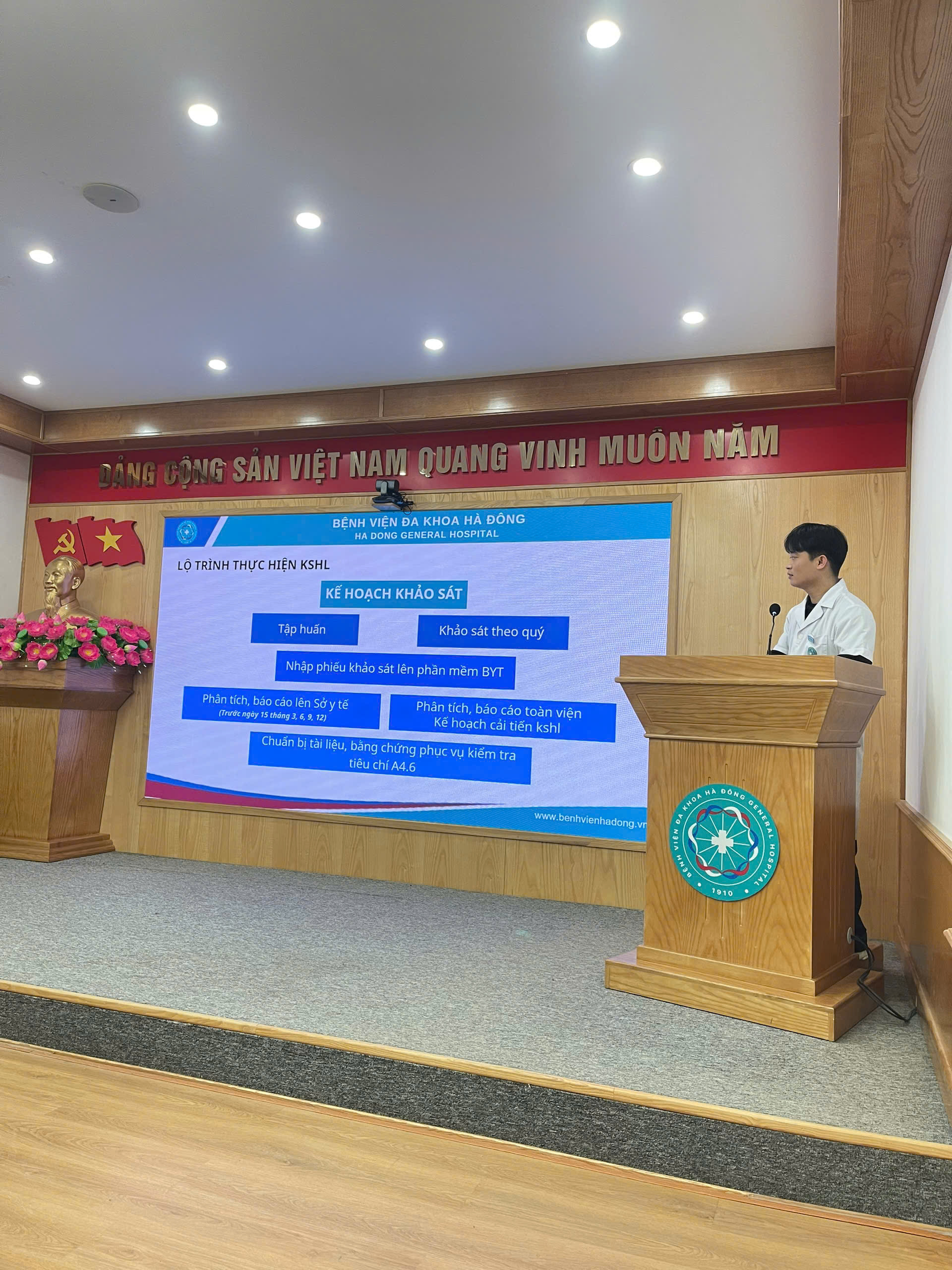 Chiều ngày 03/02/2026, Bệnh viện Đa khoa Hà Đông đã tổ chức buổi “Tập huấn khảo sát hài lòng người bệnh và nhân viên y tế năm 2026” với sự tham gia của ThS Hoàng Thị Hoa – Trưởng phòng Quản lý Chất lượng và các thành viên trong tổ khảo sát hài lòng người bệnh và nhân viên y tế của Bệnh viện.