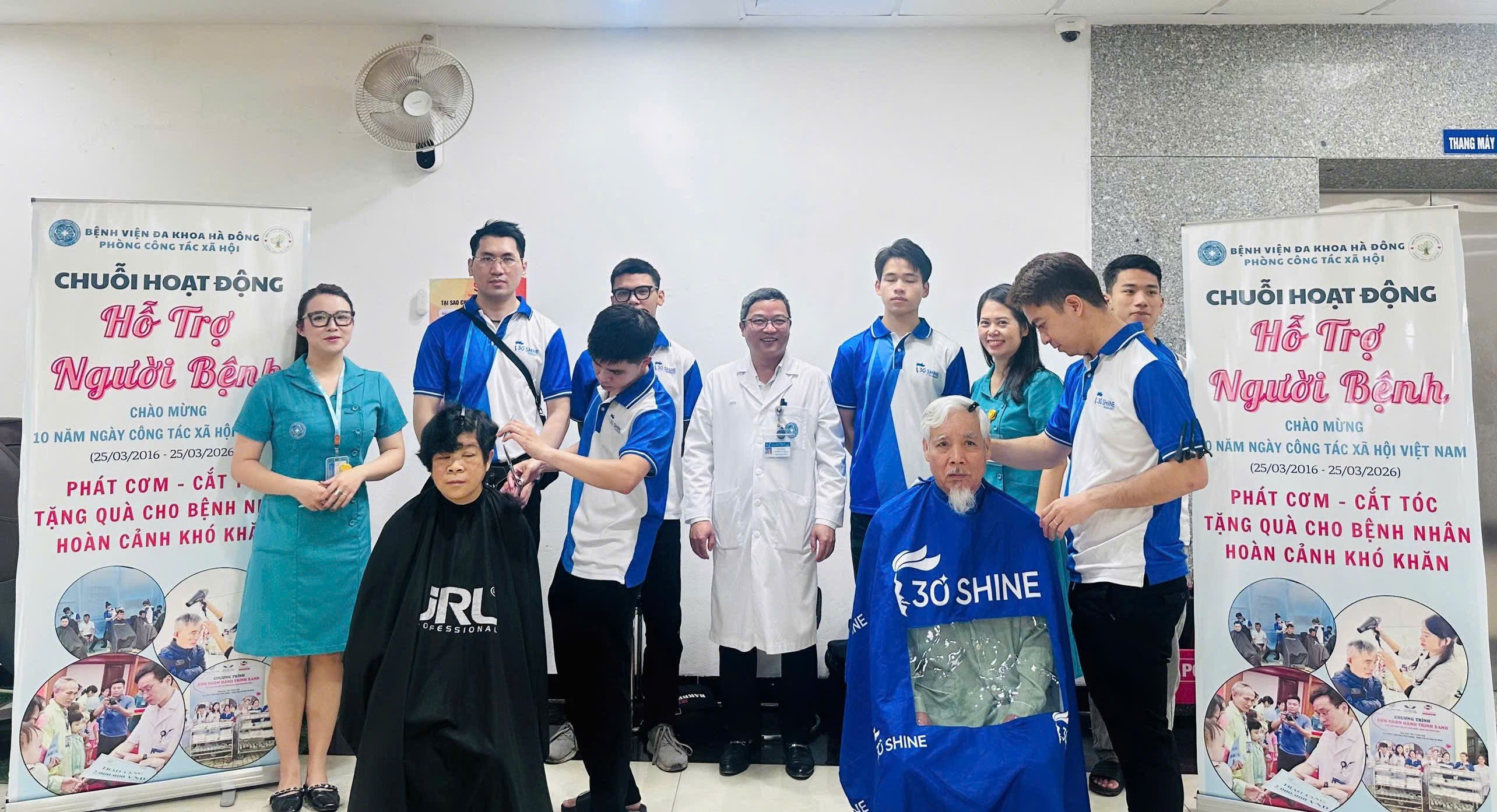 Hướng tới kỷ niệm 10 năm ngày CTXH Việt Nam, Phòng Công tác xã hội đã phối hợp cùng các đơn vị, tổ chức, cá nhân tài trợ triển khai nhiều hoạt động ý nghĩa và thiết thực: Đồng hành với nhà thuốc và tiêm chủng Long Châu trao tặng 200 suất cơm miễn phí cho người bệnh (tổng trị giá: 3.500.000 đồng); Kết hợp với Công ty TNHH Giải pháp Media Việt Nam trao tặng sữa Blackmores Newborn Formula 1 cho sản phụ và trẻ nhỏ (tổng trị giá: 116.000.000 đồng); Cùng với Trung tâm đào tạo nghề tóc 30 Shine Cademy tổ chức cắt tóc miễn phí cho người bệnh, người nhà người bệnh; Phối hợp với các em học sinh Lớp PC 2119 - Trường CĐ FPT Hà Đông trao tặng 50 suất quà cho người bệnh khoa Nội thận – Tiết niệu (tổng trị giá: 1.600.000 đồng); Ngân hàng SHB đã trao tặng 10 suất quà cho người bệnh có hoàn cảnh khó khăn, mỗi suất 1.000.000 đồng tiền mặt.