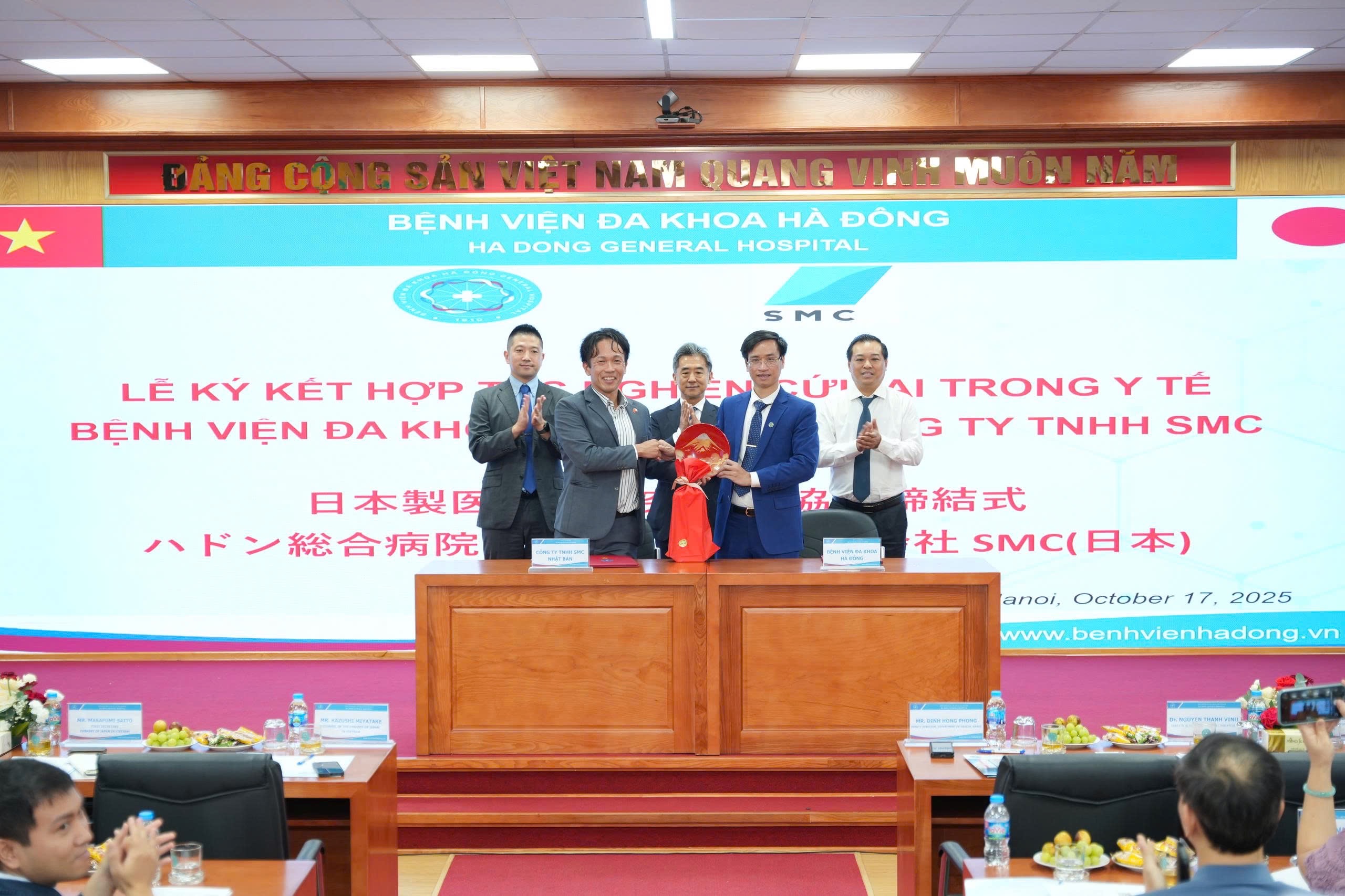 Phát biểu tại buổi lễ, TS.BS Nguyễn Thành Vinh – Giám đốc Bệnh viện Đa khoa Hà Đông khẳng định: “Chúng tôi đặc biệt vui mừng khi chính thức ký kết hợp tác với Công ty TNHH SMC – Nhật Bản trong việc nghiên cứu, ứng dụng trí tuệ nhân tạo trong chẩn đoán hình ảnh và giải phẫu bệnh. Đây không chỉ là hoạt động mang tính biểu tượng, mà còn là bước đi cụ thể trong tiến trình chuyển đổi số y tế, nhằm đưa AI trở thành ‘trợ thủ đắc lực’ cho bác sĩ, nâng cao độ chính xác trong chẩn đoán, rút ngắn thời gian điều trị và đặt người bệnh làm trung tâm.”