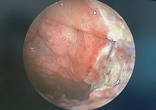 Hốc mổ sau khi cắt khối u và Amidan bên trái bằng dao Ligasure