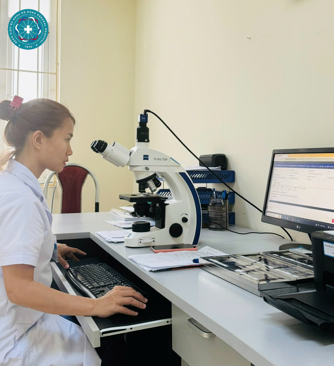Xét nghiệm mô bệnh học là phương pháp phân tích mẫu mô lấy từ cơ thể người bệnh qua sinh thiết hoặc phẫu thuật. Tại khoa Giải phẫu bệnh, mẫu bệnh phẩm được xử lý qua các bước kỹ thuật nghiêm ngặt: cố định, đúc, cắt, nhuộm và quan sát dưới kính hiển vi để đánh giá cấu trúc tế bào,mô.