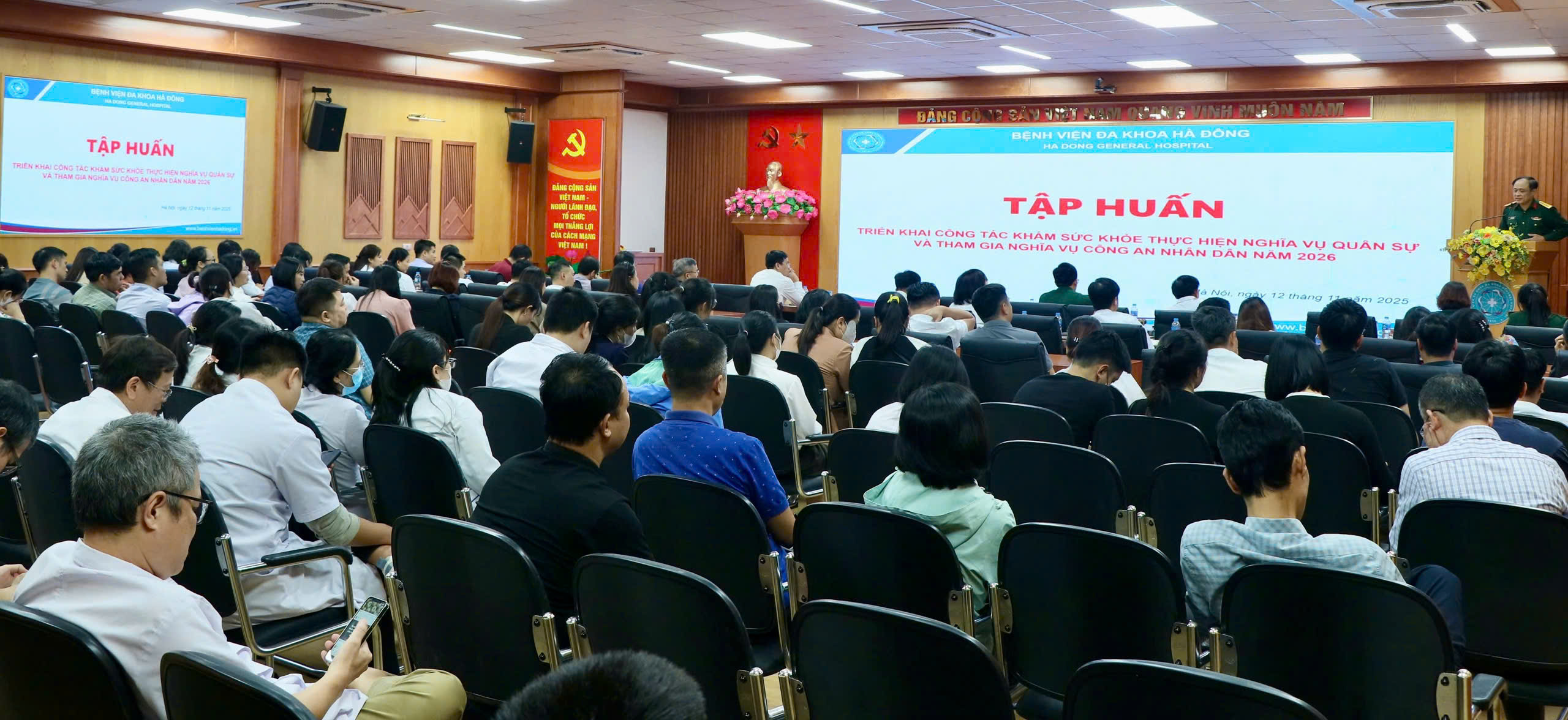 Chiều ngày 12/11, Bệnh viện Đa khoa Hà Đông phối hợp Ban chỉ huy phòng thủ khu vực V – thanh Oai tổ chức lớp tập huấn chuyên môn cho 06 Hội đồng khám sức khỏe thuộc Ban chỉ huy phòng thủ khu vực V -Thanh Oai theo Thông tư số 105/2023/TT – BQP và 106/2025/TT – BQP.