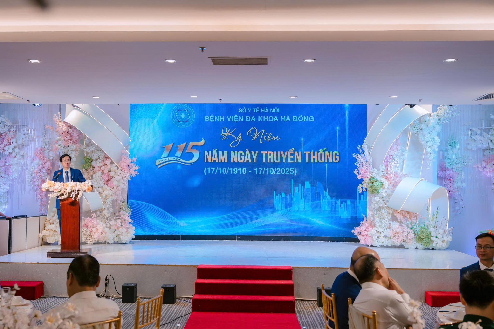 Phát biểu khai mạc buổi lễ, TS.BS Nguyễn Thành Vinh – Giám đốc Bệnh viện xúc động điểm lại chặng đường phát triển 115 năm qua của đơn vị. Từ một nhà thương tỉnh lỵ nhỏ bé được thành lập năm 1910, trải qua những năm tháng chiến tranh khốc liệt và thời kỳ đất nước đổi mới, Bệnh viện Đa khoa Hà Đông ngày nay đã vươn mình trở thành bệnh viện hạng I, tuyến cuối của Thủ đô, là địa chỉ khám chữa bệnh tin cậy cho hàng triệu người dân khu vực phía Tây Hà Nội và các tỉnh lân cận.