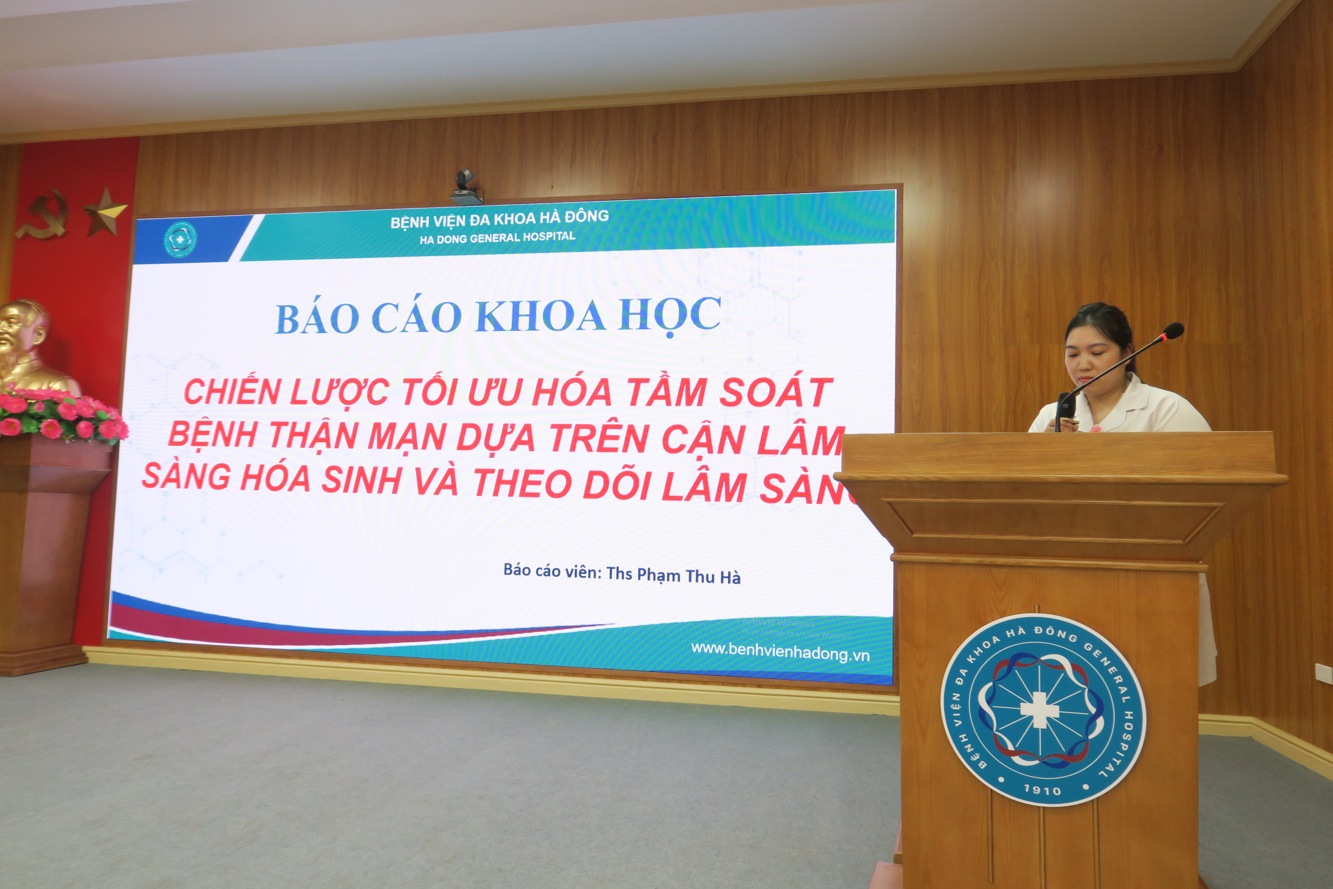 Cùng với đó, Th.S Phạm Thu Hà – Khoa Hóa sinh trình bày chuyên đề “Chiến lược tối ưu hóa tầm soát bệnh thận mạn dựa trên cận lâm sàng hóa sinh và theo dõi lâm sàng”, nhấn mạnh vai trò của xét nghiệm sinh hóa trong phát hiện sớm và quản lý bệnh thận mạn.