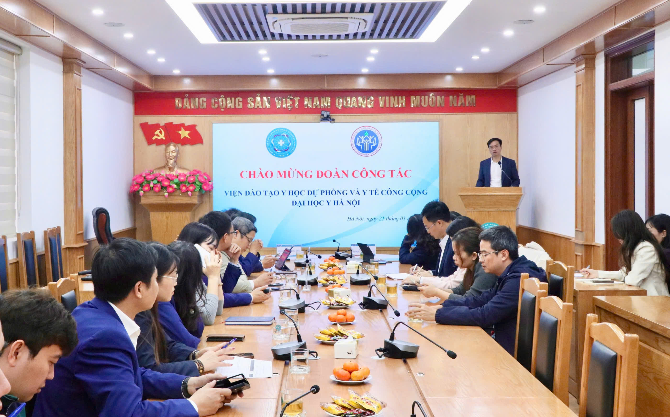 Toàn cảnh buổi tiếp và làm việc cùng đoàn công tác bộ môn tổ chức và quản lý y tế - Viện đào tạo y học dự phòng