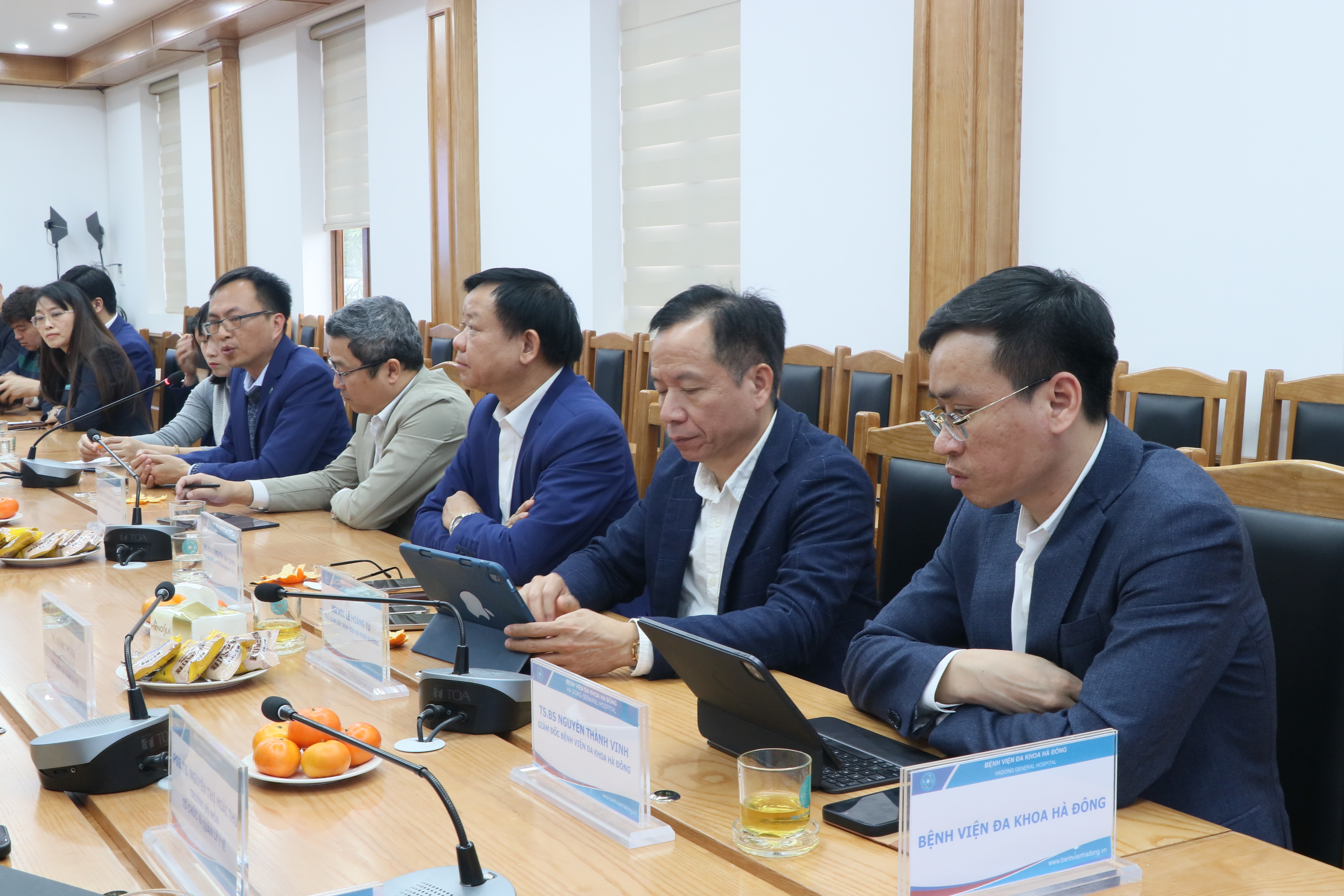 TS.BS Nguyễn Thành Vinh – Giám đốc Bệnh viện Đa khoa Hà Đông phát buổi tại buổi tiếp đoàn