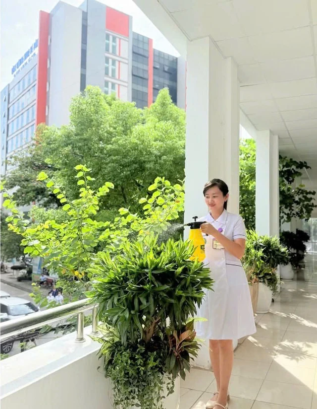 Bệnh viện khuyến khích mỗi cán bộ, nhân viên y tế chăm sóc một cây xanh để khuôn viên bệnh viện được xanh hơn.