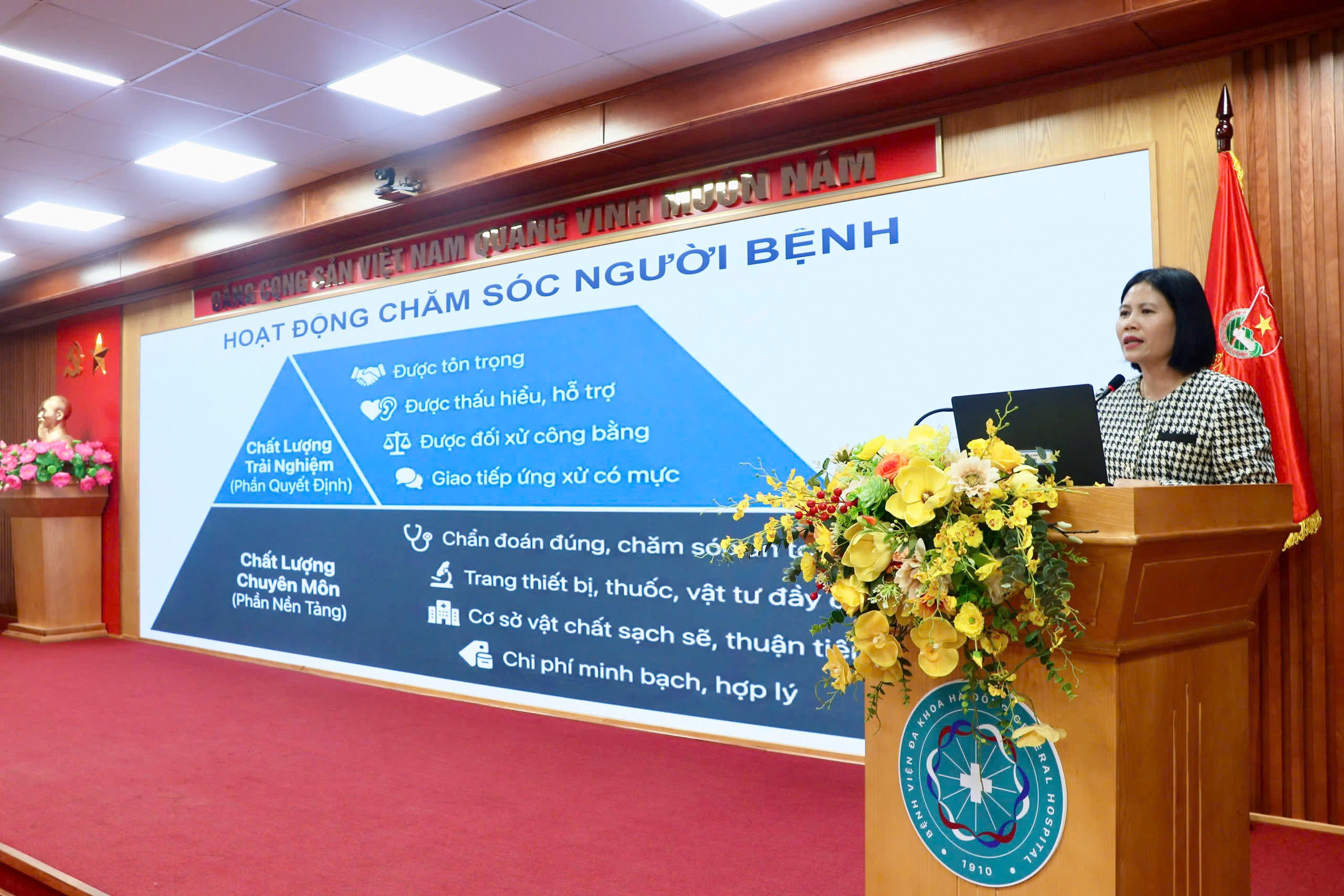 Tại hội nghị, ThS. Nguyễn Thị Phương – Trưởng phòng Điều dưỡng đã trình bày Báo cáo tổng kết hoạt động Điều dưỡng – Hộ sinh – Kỹ thuật y năm 2025 và phương hướng nhiệm vụ năm 2026. Báo cáo đã đánh giá toàn diện những kết quả đạt được trong công tác chăm sóc, theo dõi và phục vụ người bệnh; chỉ ra những tồn tại, khó khăn, đồng thời đề ra các nhiệm vụ, giải pháp trọng tâm nhằm tiếp tục nâng cao chất lượng công tác điều dưỡng trong thời gian tới.